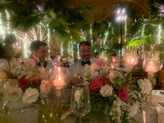 Did you know that Colombia exports more than a billion roses a year? Some of the roses in your garden may even have originated there. Here’s a pic of my husband and son-in-law at the reception with So. Many. Roses. Gorgeous.