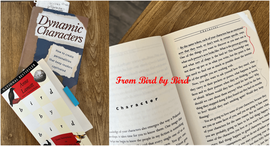 And of course there is Anne Lamott’s funny and engaging “Bird by Bird” (1994). This book changed the way I thought about character development. Lamott speaks of characters having an emotional acre of land enclosed by a locked gate. Characters can grow whatever they want, or not grow anything at all. They can fill it with junk, keep everyone out, let everyone in, or open the gate for a select few. The point is that what a character decides to do with her emotional acre says much about the kind of person she really is. If you have this book but haven’t picked it up in a while, do so and revisit the chapters on plot and dialog as they offer  practical advice on craft as well.