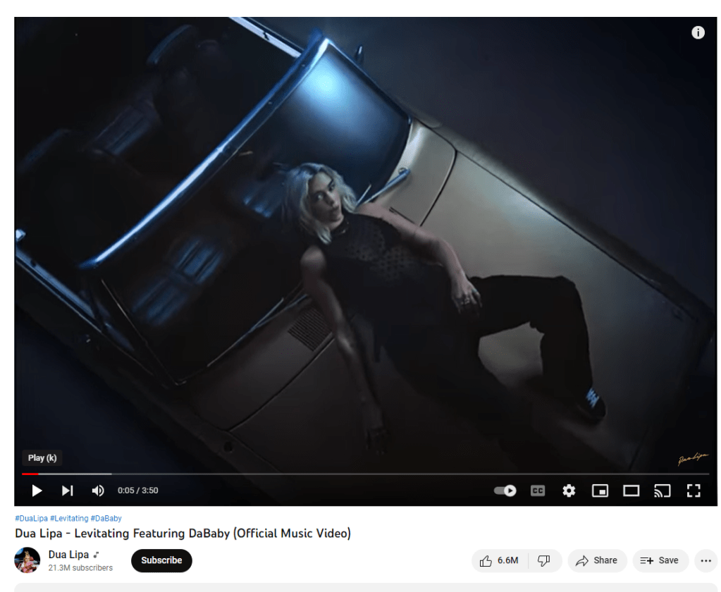 Levitating: artist, Dua Lipa. This is my favorite song from her album “Future Nostalgia,” but pretty much every song on the album is great.