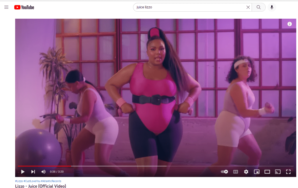 Juice: artist, Lizzo. More love! For every song Lizzo does and the self-acceptance she promotes.