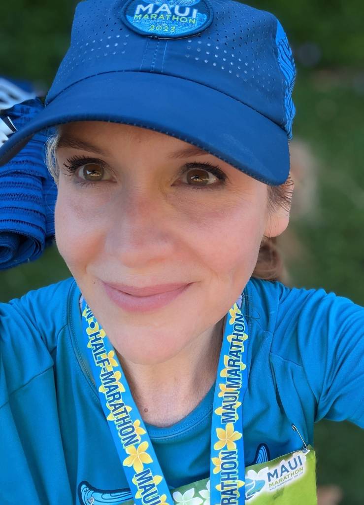 Things started out tough even before the race began. Because my boyfriend, Ian, was running the full marathon, he had to take an early morning shuttle to the starting line, which necessitated a 3 a.m. (not a typo) wakeup call. We rallied. I caffeinated. Things were looking up. Unfortunately, the mercury was also on its way up as Maui’s heat and humidity began to rise. It was already hot. Very hot.