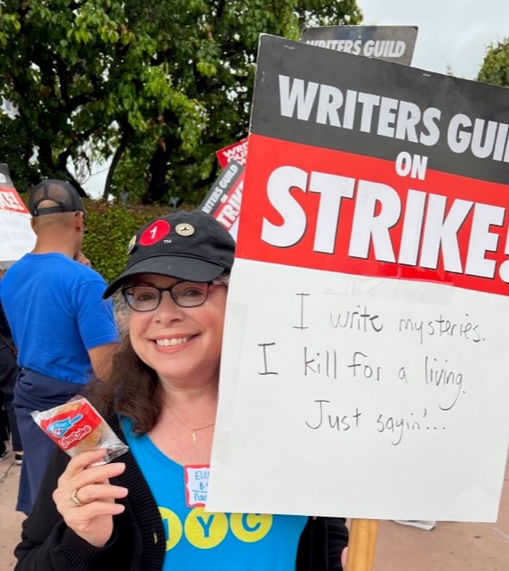 Thanks to a twenty-five year as a TV writer-producer (the schizy ups and downs of that career are a subject for another blog post), I’m a lifetime member of the Writers Guild of America. I owe my pension and lifetime medical to the union – if you enjoy my mysteries, thank my husband’s job and that pension for keeping us afloat and allowing me the freedom to write – so I don’t take my membership lightly.