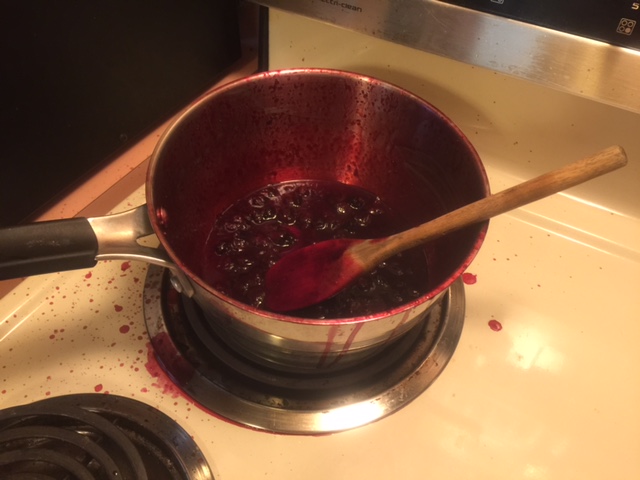 I staged most of the photos outside, to avoid those ugly counters. And I only messed up on the actual cooking once, when the blueberries came to a boil sooner than expected while I was chasing the dog.