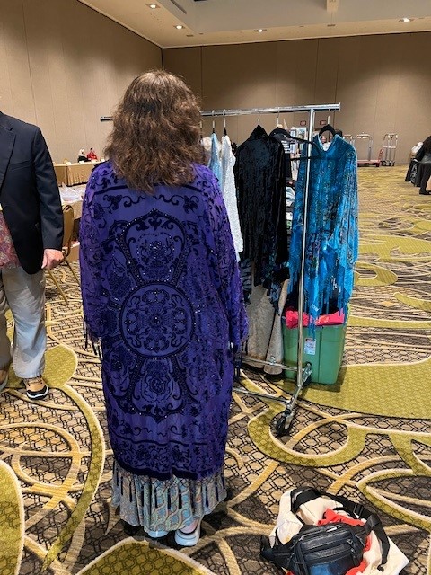 And falling in love with a velvety, sequiny, beady wrap I absolutely don’t need. And buying it anyway.