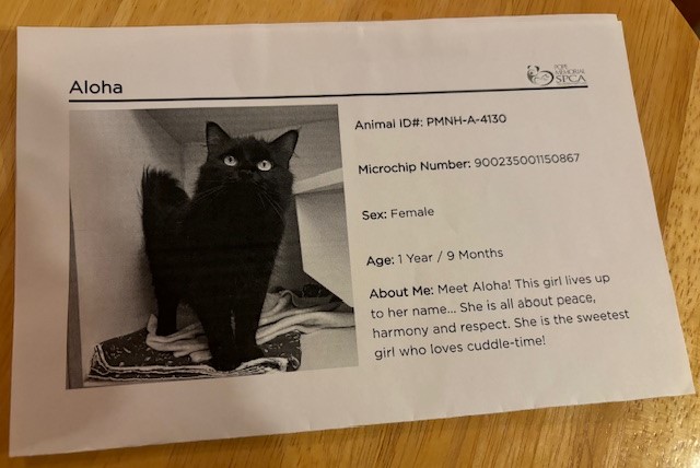 Hope you enjoyed meeting Aloha! Many thanks to Pope Memorial SPCA in Concord, NH and the Feline Flight Crew of SPCA in Dallas, Texas. And now Aloha and I will excuse ourselves, because “we” have a manuscript to finish—but we’ll see you on the flip side!