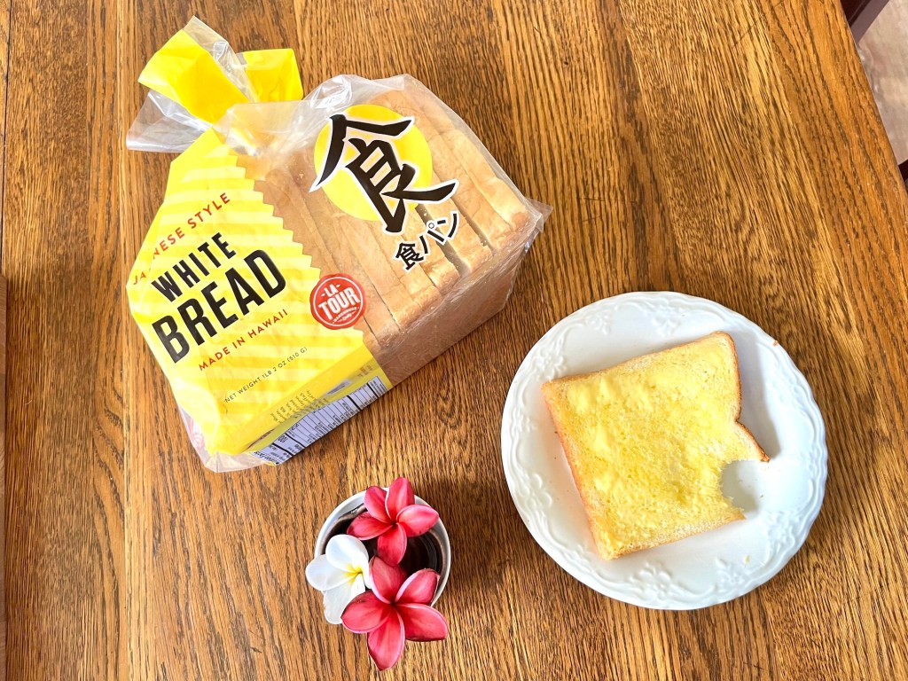 Next stop was KTA, my favorite local grocery store, for the bulk of my food items. It has an enormous Asian food section, and I was excited to buy a loaf of Japanese-style white bread, which I used to make some deliciously soft and fluffy buttered toast as soon as I got home.