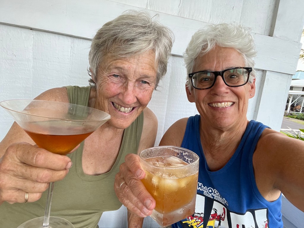 But for now, we’re sticking close to home, defrosting the freezer, pumping up our bicycles tires, wiping down the mold on the walls, whacking back towering plants and pulling weeds, and—promptly at five o’clock—observing cocktail hour on our front lānai.