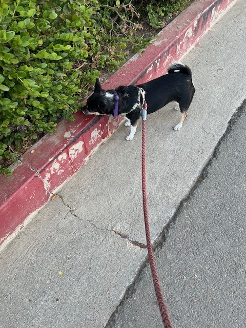 Likes: Catching rays. Long walks at sunset, with plenty of breaks to sniff other dogs’ pees. Stealing socks. (My nickname is The Sock Bandit.) Destroying toys.