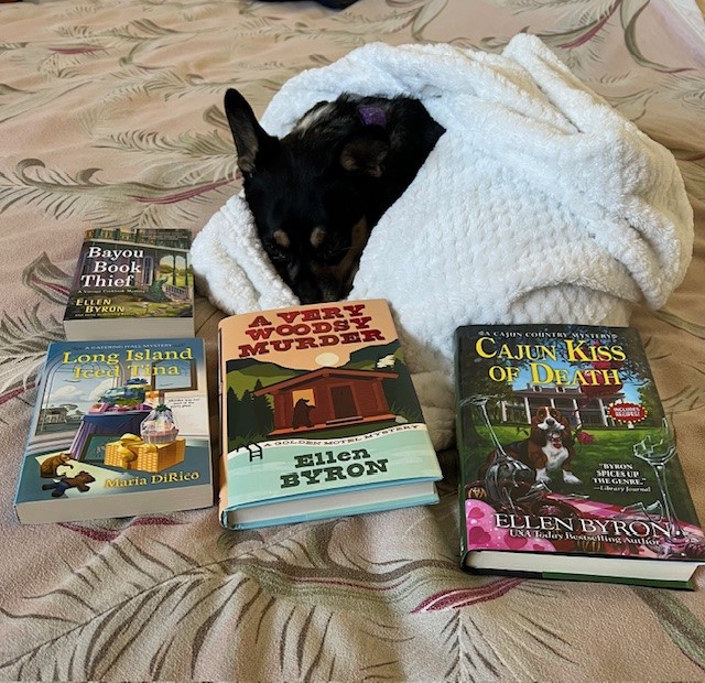 I might switch my allegiance to Mom if she ever put ME on the cover of one of her darn books. Okay, fine, I get the basset hound. Hard to compete with them. But peacocks?! A bear? A CAT?!!! Puh-leeze.