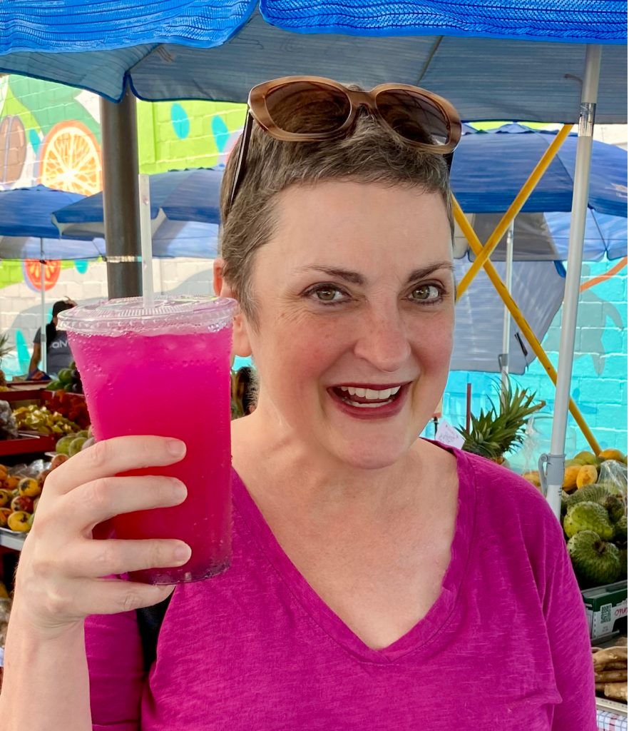 OMG, you’re right! I see now the mural behind you–ha! Is that a dragon fruit smoothie?