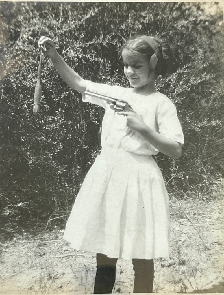 Grammy at around age 10 (that is indeed a cap gun and lizard she’s holding)