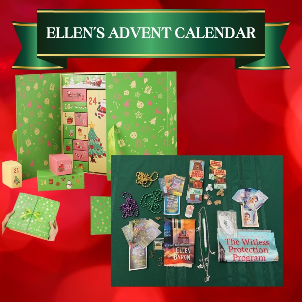 Last year, I even turned my calendar love into a crafting project, creating an Ellen Byron advent calendar filled with swag as a giveaway for one lucky winner. It was a you-know-what-ton of work, so I’m passing on doing it this year. But I’m not ruling out a future foray into DIY calendaring.