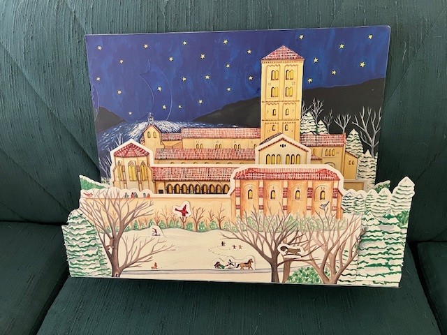 Spurred by fond memories from childhood, I also buy plain old paper advent calendars. But they’re so pretty that I often can’t bring myself to open them. The Christmas tree below is untouched. I did open the calendar inspired by my all-time favorite museum, the Cloisters, but it’s so pretty it was worth saving. And there’s no way I’ll remember what was behind those little doors, so it will be like opening a brand-new calendar when I reuse it.