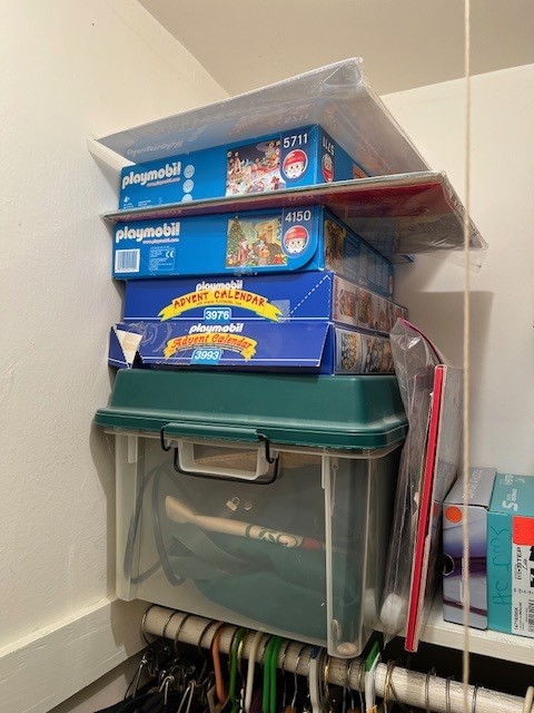 As I got older, I generally sought out one of these calendars around Christmastime, but my interest waxed and waned. Then we had our own child, and I discovered that Playmobil made calendars where each box contained the elements to build a lovely holiday scene. I was hooked. Our daughter quickly lost interest in opening the little boxes, but not me. Each morning, I gleefully added another plastic chair or dog or tree to the scene. I still have those Playmobil sets and sometimes set one up for myself…