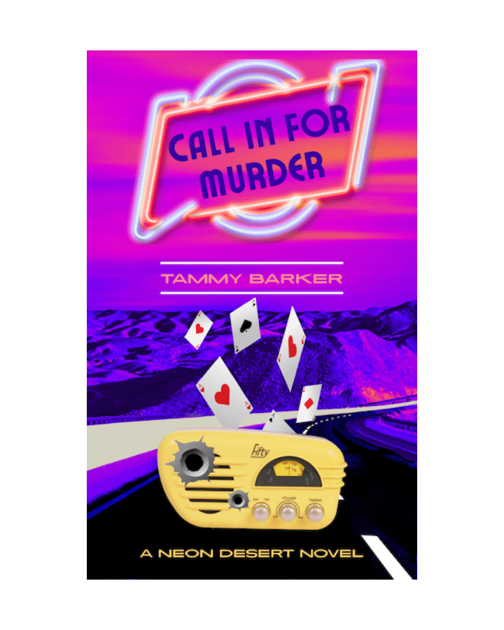 Our next guest needs no introduction: A big feathery welcome to Tammy Barker, good friend of the Chicks and newly minted debut author of CALL-IN FOR MURDER, the first book in the Neon Desert Mysteries. Wait, what? Hold the phones! Someone else is barging–er, calling–in. You’re on the air with Miss LARE!