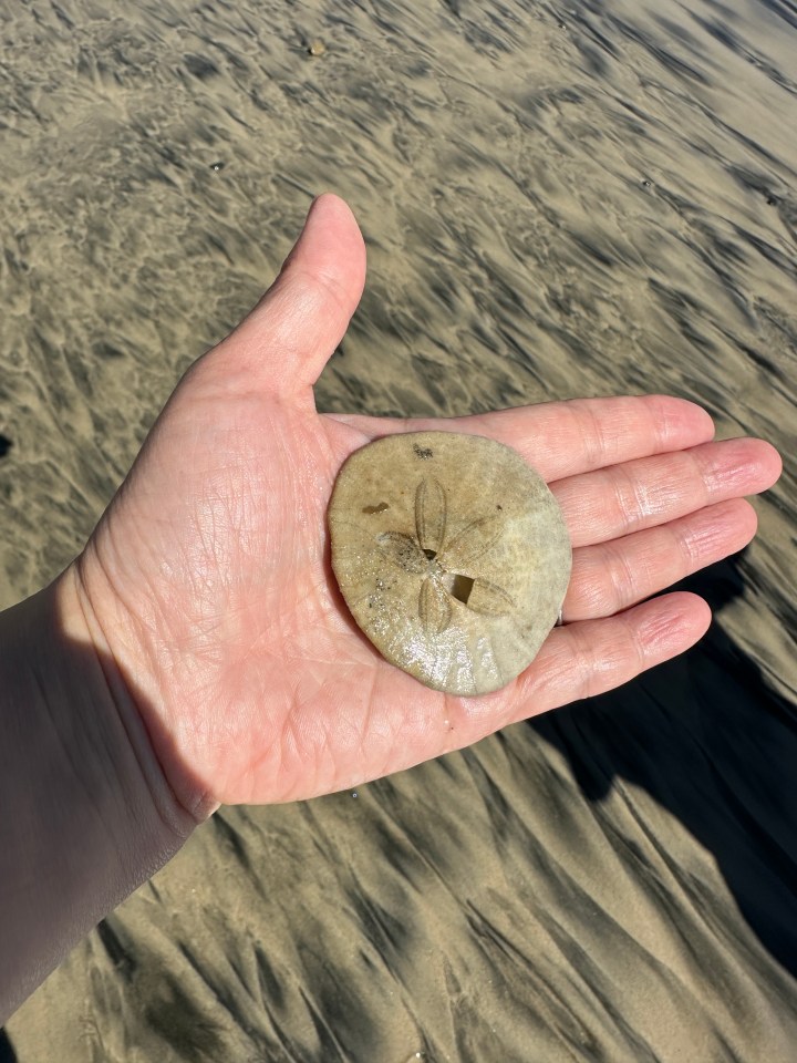 I’ve taken up going to the beach more often. I find that it’s my happy place, especially with the calming ocean waves. What I loved to do as a kid—and what I’ve since rediscovered—is beachcombing. I like picking up treasures like this sand dollar. Recently, I also found a teeny tiny piece of polished sea glass.